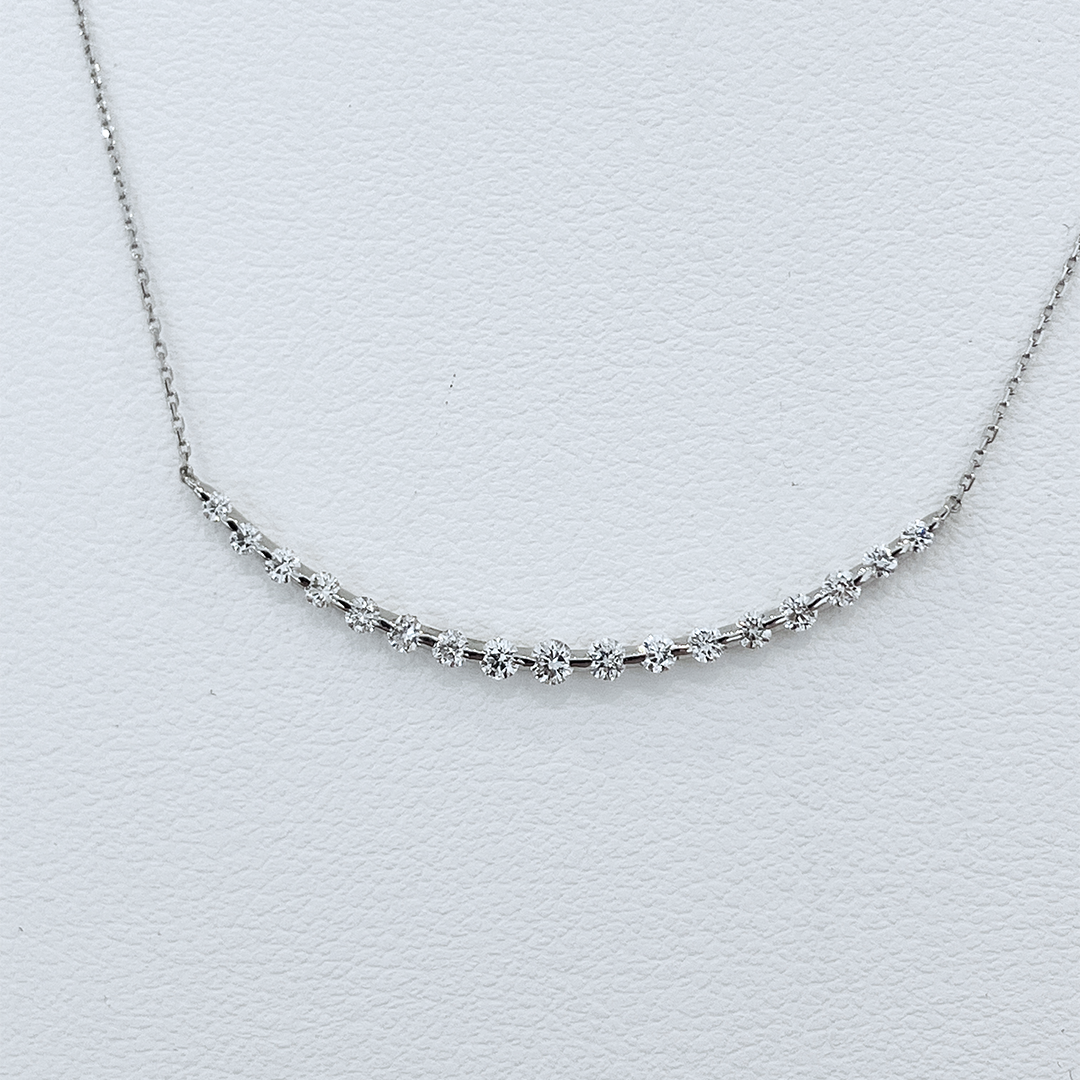 首元に沿ったデザインで、厳選したダイヤモンドが綺麗に輝きます。